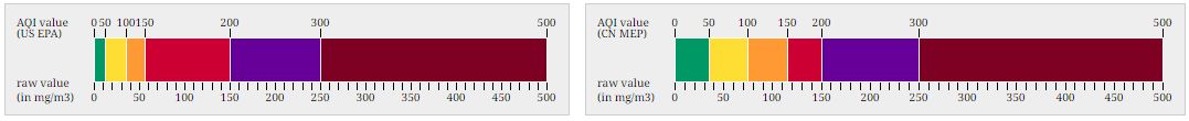 Zunächst einmal ist wichtig zu verstehen, dass es so etwas wie „der AQI für Shanghai“ nicht gibt. Vielmehr ist das was einem auf den einschlägigen Webseiten wie http://www.aqicn.org in der Übersicht angezeigt wird sowas wie die obere Grenze einer Sammlung an AQI-Werten. Es gibt einen AQI für die Konzentration von PM2.5, PM 10, Ozon (O3), Stickoxiden, Schwefeloxiden usw … Der Wert welcher am schlimmsten ist wird dann in der Übersicht als AQI für den jeweiligen Messpunkt angezeigt. In den meisten Fällen ist das eine der beiden Partikel-Konzentrationen. Wichtig ist hierbei zu wissen, dass PM 2.5 und PM 10 die Größe der Partikel angibt. Bei PM 10 handelt es sich um Partikel mit 10 Mikrometer Durchmesser und größer, PM 2.5 hat einen Durchmesser von kleiner 10 bis zu  2.5 Mikrometer. Dabei ist zu beachten, dass Partikel mit einem 2.5 Mikrometer Durchmesser (PM 2.5) als besonders kritisch angesehen werden, da diese nicht durch Nase und Rachen herausgefiltert werden können und somit bis in die Lunge gelangen. Falls ihr mehr darüber lesen möchtet empfehle ich den verlinkten Wikipedia-Artikel. Damit sind wir auch schon bei einem Dilemma dieser Angabe: Werte zwischen zwei Messstationen sind nur bedingt vergleichbar. Der Vergleich zwischen Deutschland und China zum Beispiel hinkt massiv, da in Deutschland PM 2.5 meist gar nicht erfasst wird. Desweiteren gibt es unterschiedliche Interpretationen und Skalen für verschiedene Länder … Die zwei für mich in China relevanten sind zum eine die der WHO und zum anderen die Chinesische Skala.